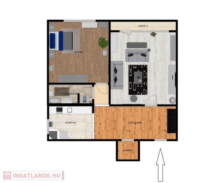 - 2 szoba, erkély, Déli fekvés