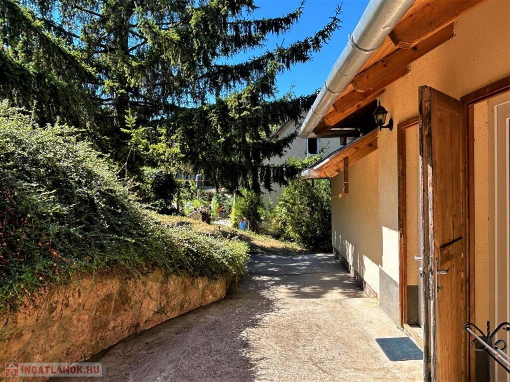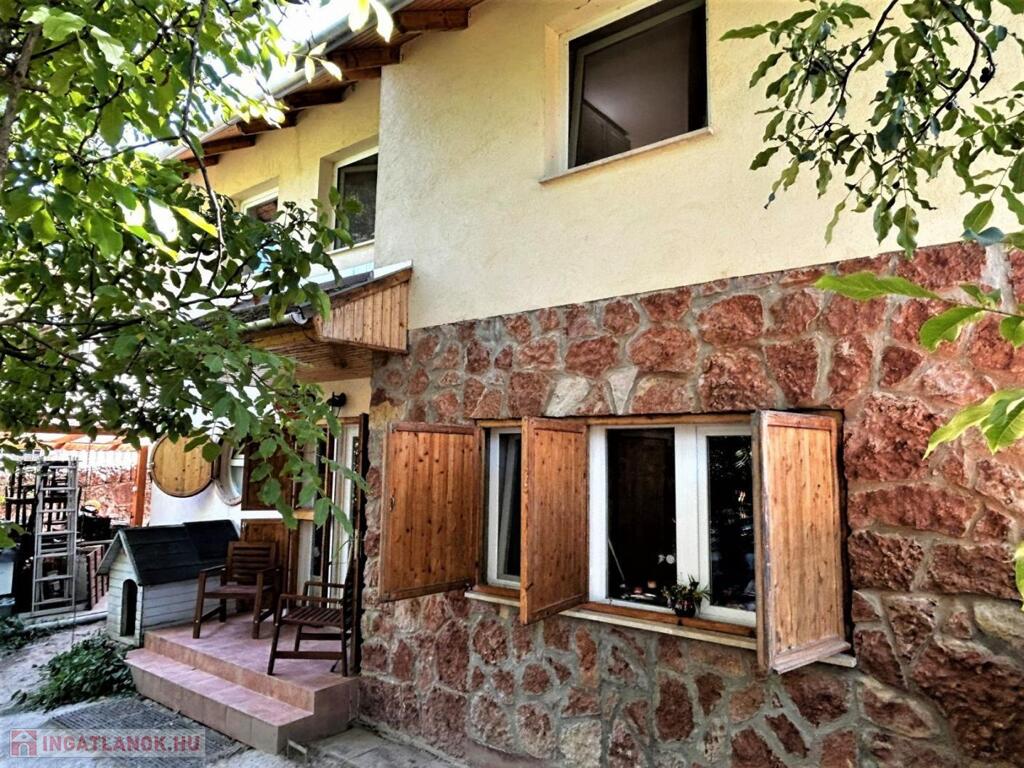 A 2144 m2- es telken egy, az 1980-as években épült, földszint + emeletes+ magastetős lakóház található, kő és tégla falazattal. Körben kő támfallal. Eredetileg présháznak épült, boltíves pincével, később alakították állandóan lakható épületté. Az emelet 2006-2008 között készült el. A födém vasbeton szerkezetű, a tető zsindellyel fedett, külső nyílászárói műanyag szerkezetűek, hőszigeteltek. A ház melegét egy vegyes tüzelésű kazán és egy 3 patronos villanyos kazán adja radiátoros hőleadással. A melegvíz villanybojleres. Az épület kívül -belül jó műszaki és esztétikai állapotú.