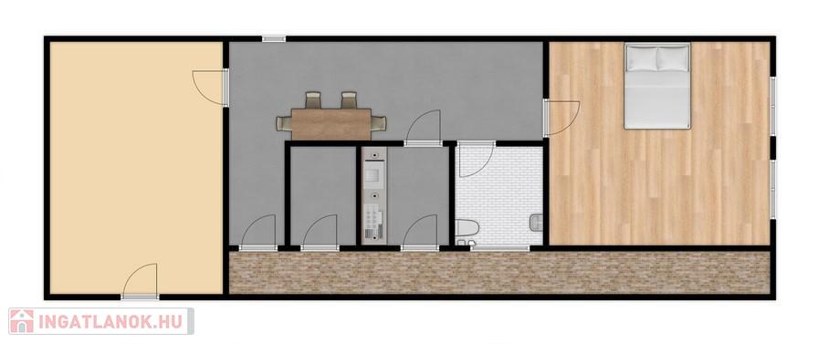 1 tágas hálószoba (plusz egy hálószoba könnyen kialakítható a 26,46 m²-es tárolóból)