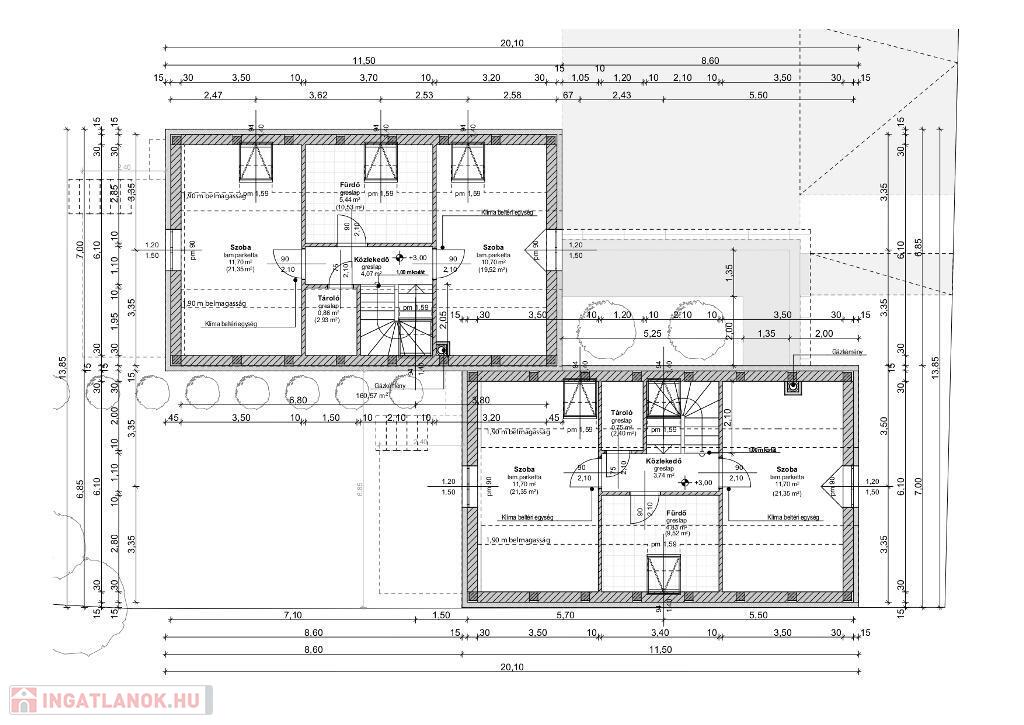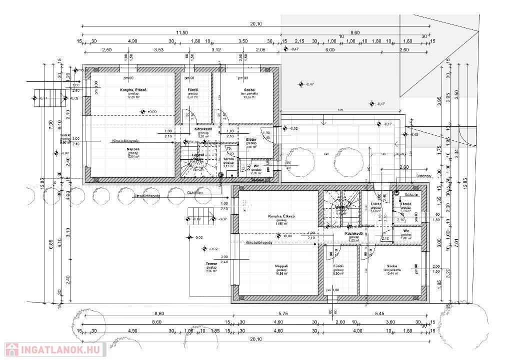 A 637 nm-es összközműves (víz, villany, gáz,csatorna) telken 91 és 94 nm es m2-es, földszintes+ emelet kialakítású 3 szoba + amerikai konyhás- nappalis elrendezésű ikerházak épülnek magas szintű, kulcsrakész kivitelezéssel, 150 nm-es hozzávetőleges saját telekhányaddal.