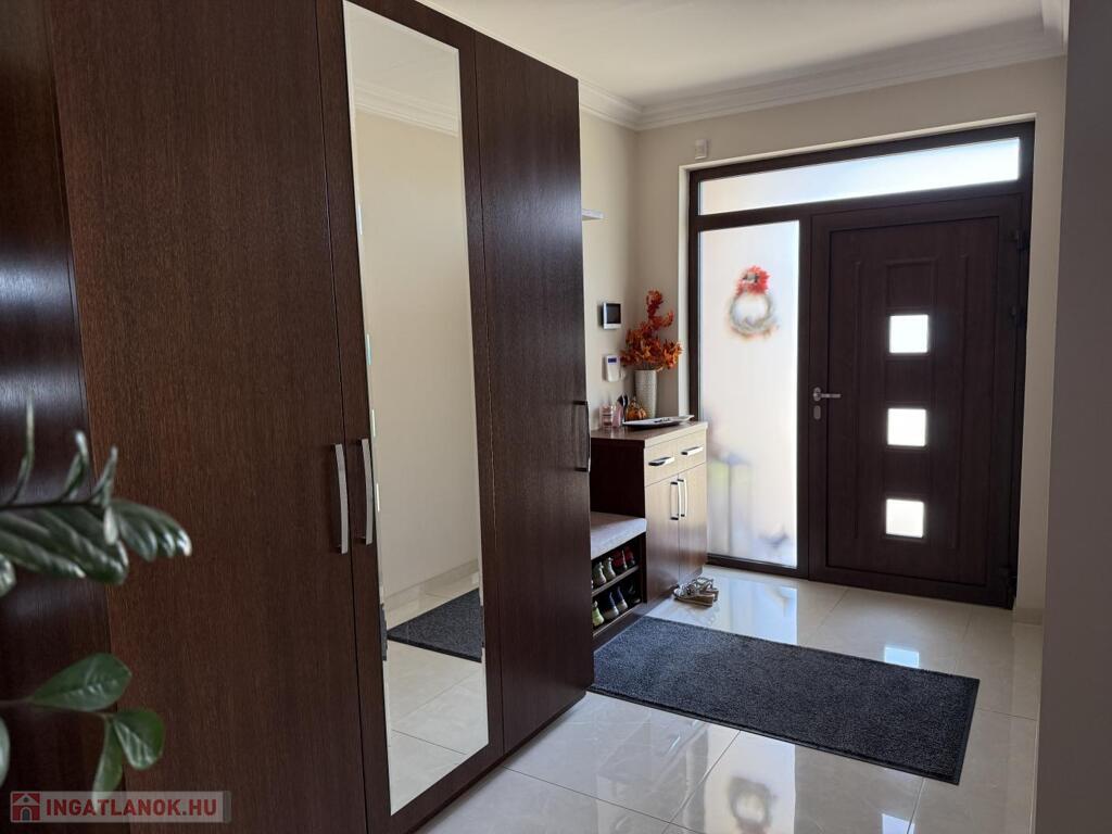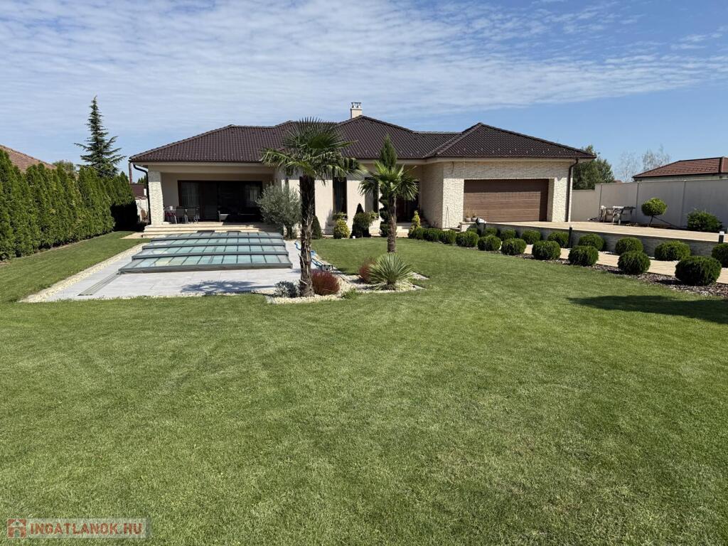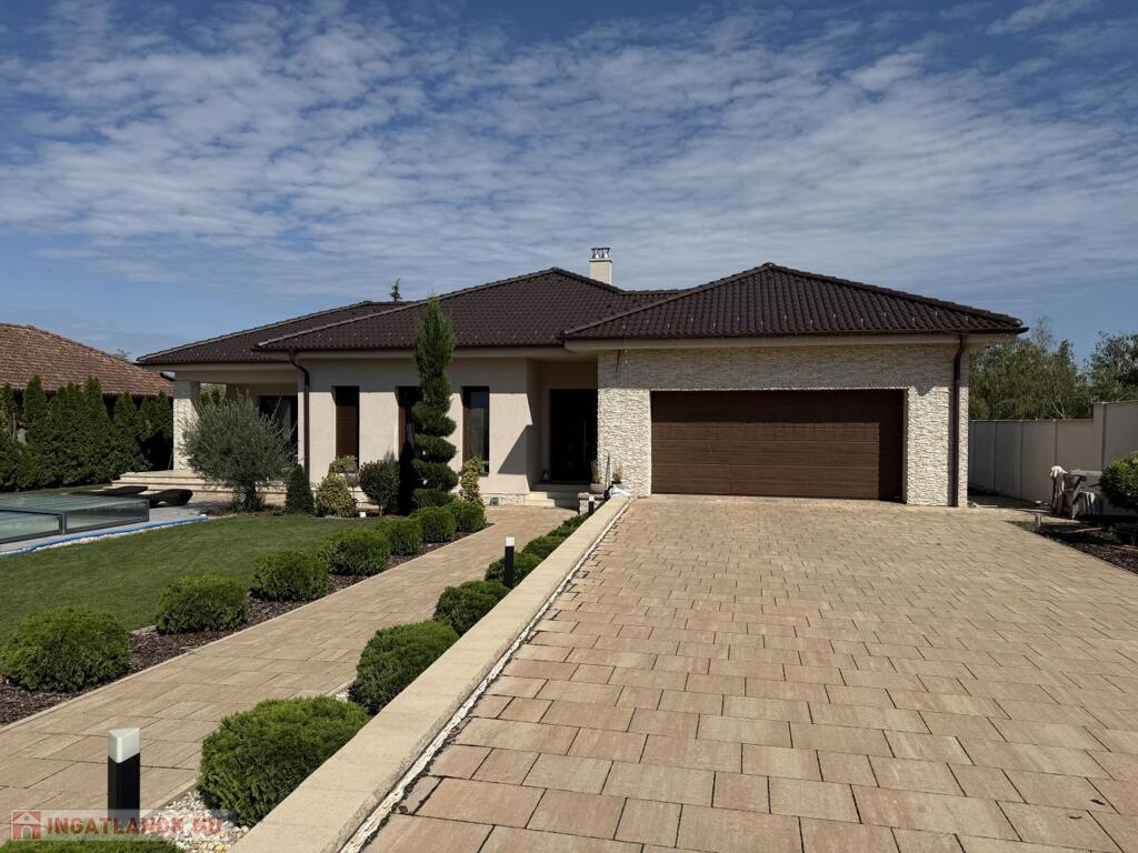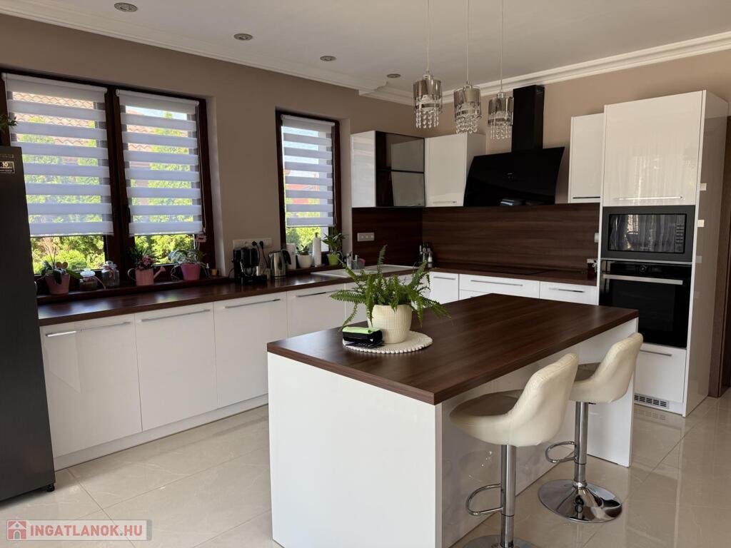 Komárom egyik legkedveltebb, csendes kertvárosi övezetében kínáljuk eladásra ezt a minden részletében tökéletesen megalkotott, 2020-ban épült luxus lakóházat. Az ingatlan egy 1 433 m²-es, gondosan parkosított telken helyezkedik el, és a modern építészet, a természet közelsége, valamint a kompromisszummentes minőség tökéletes harmóniáját képviseli. Ez az otthon nem csupán egy ház, hanem egy életstílus: elegancia, kényelem és privát luxus egyben.