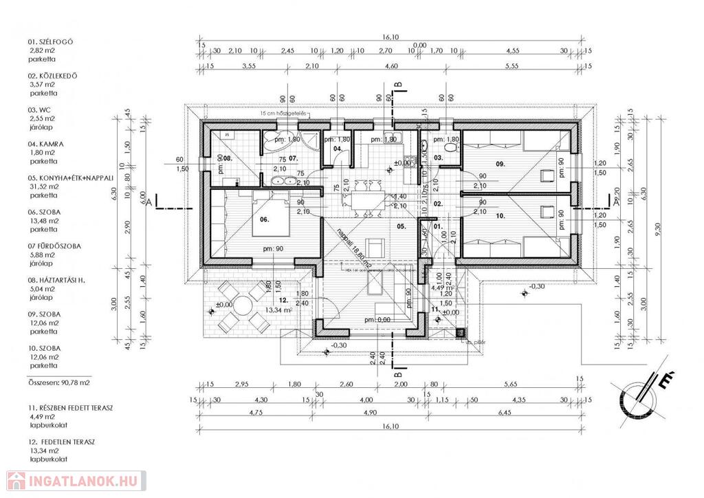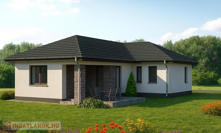 • Épület típusa: egyszintes, 3 hálószoba + amerikai konyhás nappali, terasszal