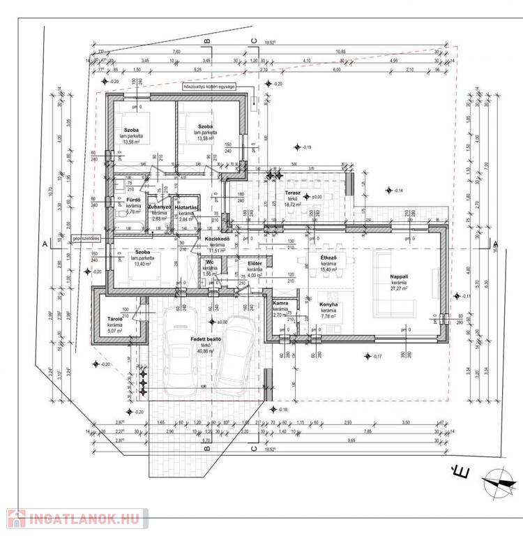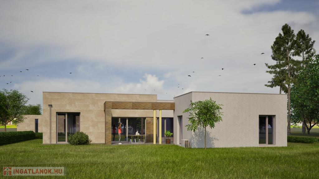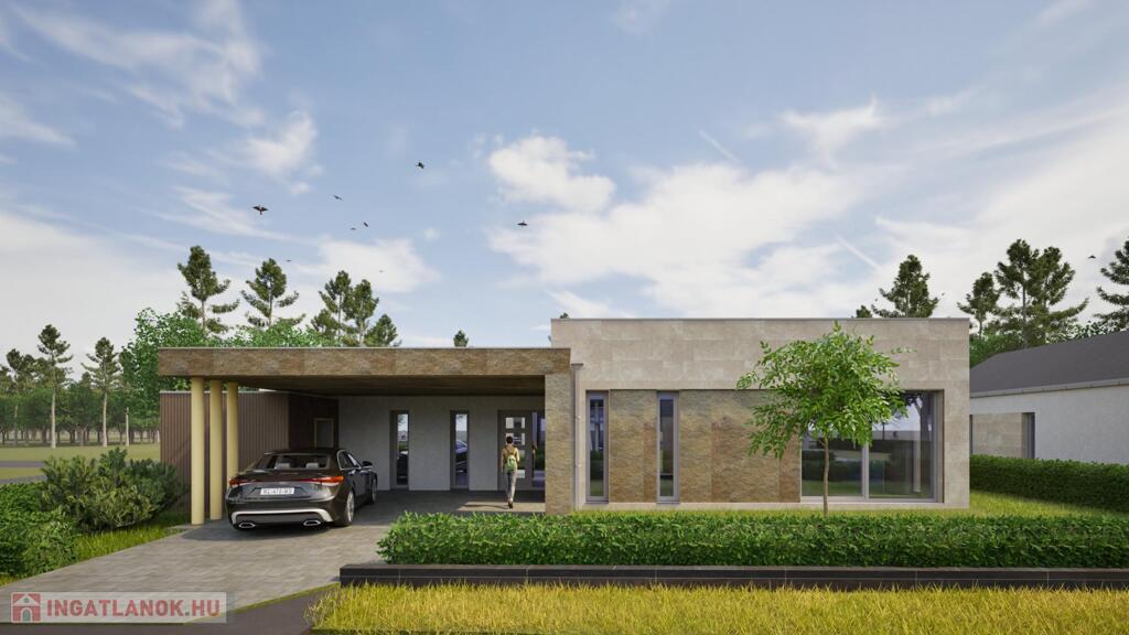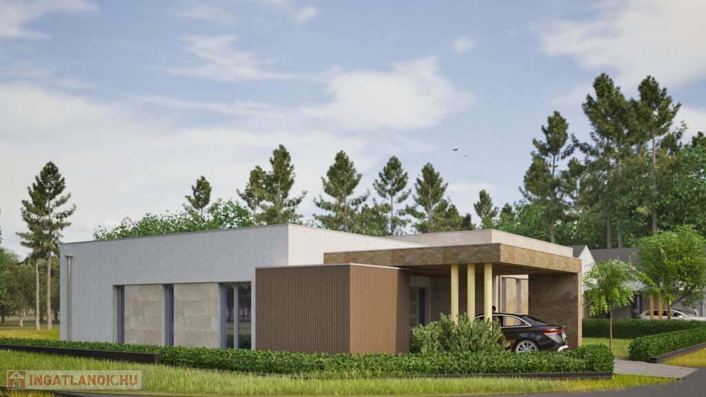 A mai modern igényeket jól kiszolgáló, lakóterében egyszintes, kényelmesen élhető, három szoba + amerikai konyhás nappalis (3 méter 30 cm belmagassággal) ,két fürdőszobás, fedett kocsibeállóval megépített ÖNÁLLÓ CSALÁDI HÁZ fogalmazódott meg a tervezés során. Melyet alaposabban áttanulmányozhat a tervrajzok és a látványtervek segítségével.