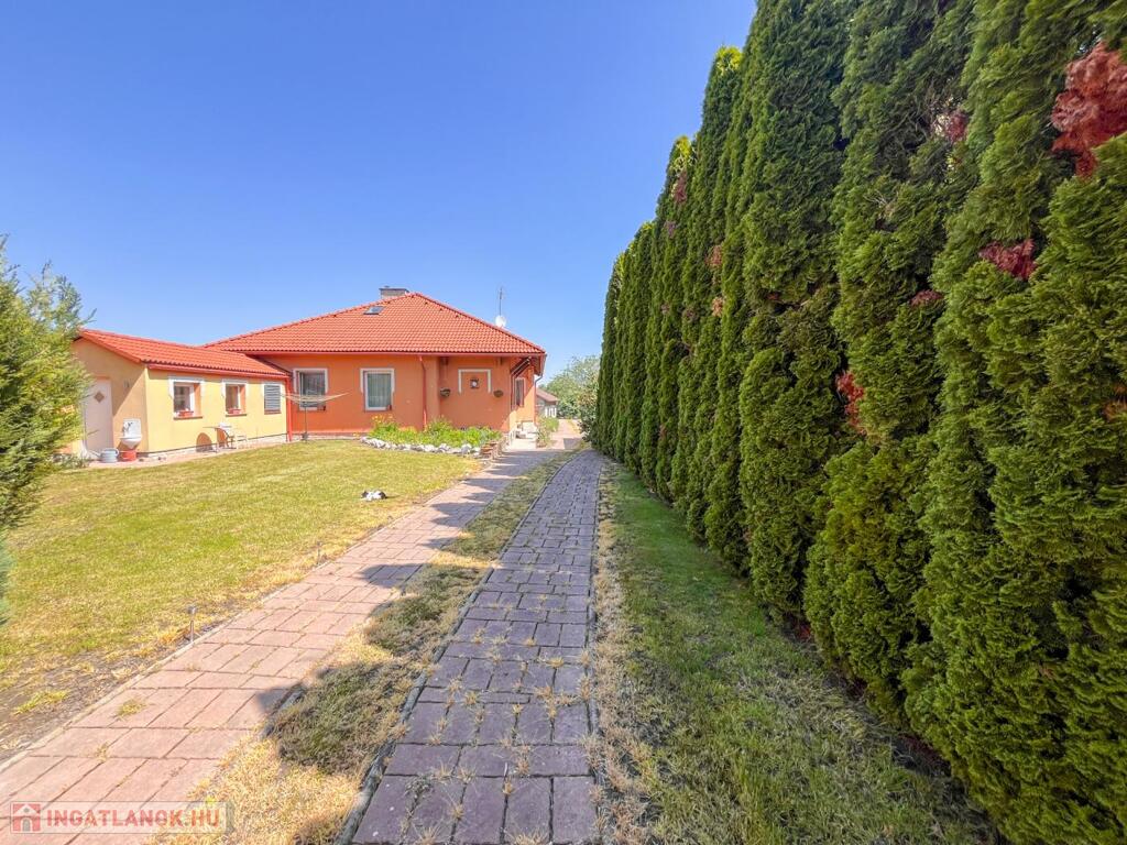Az ingatlanhoz tartozó 1171 négyzetméteres belső udvar egyedülálló környezetet biztosít, ahol a természet és a kényelem harmonikusan egyesül. A tervezés és kialakítás minden részletére odafigyeltek, hogy kellemes és élvezetes helyszínt nyújtson a lakók és látogatók számára. Az udvart magas tuják és elegáns tégla kerítés veszi körül, amelyek intimebb és meghittebb légkört teremtenek, miközben védett érzetet biztosítanak. A gondosan parkosított területek és a megválasztott növényzet hozzájárulnak az udvar szépségéhez és ápoltságához, míg a térkövezett részek egyszerű karbantarthatóságot biztosítanak, így az udvar mindig rendezett és vonzó marad. Az öntözést fúrt kútról biztosítják, ami hatékony és fenntartható megoldást jelent a növények frissességének megőrzésére, csökkentve ezzel a vízfelhasználást és a költségeket.