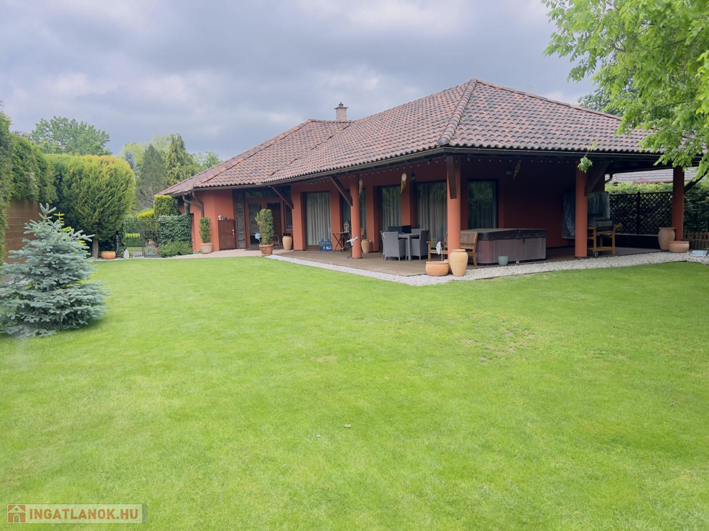 Ez a praktikus kialakítású, 200 m²-es, nappali + 4 hálószobás, duplagarázsos családi ház, egy 1000 m²-es, gyönyörűen parkosított telken helyezkedik el. Az ingatlan külső és belső megjelenésében is az igényesség, időtállóság és kifinomult elegancia ötvöződik.