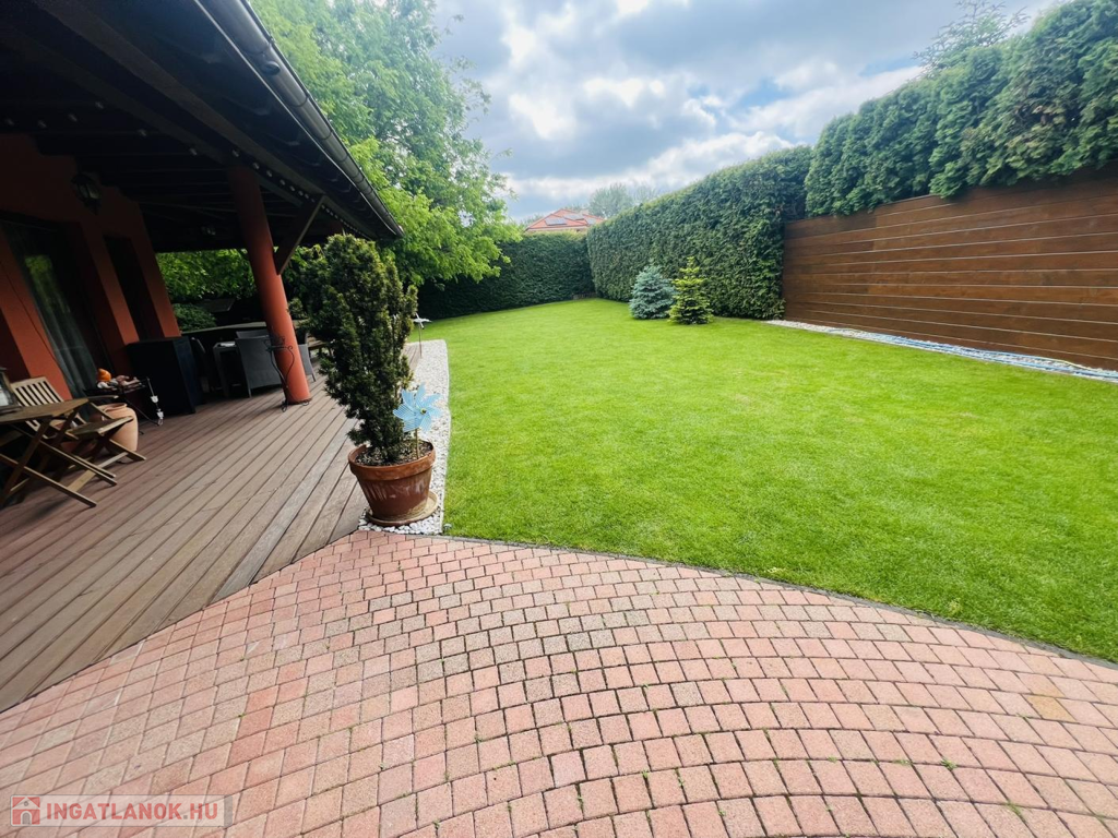 A házat gondosan ápolt, parkosított kert öleli körbe, melynek végében egy igazi gyerekkuckó várja a legkisebbeket: egy fára épített, hangulatos házikó, ami minden kisgyermek álma.