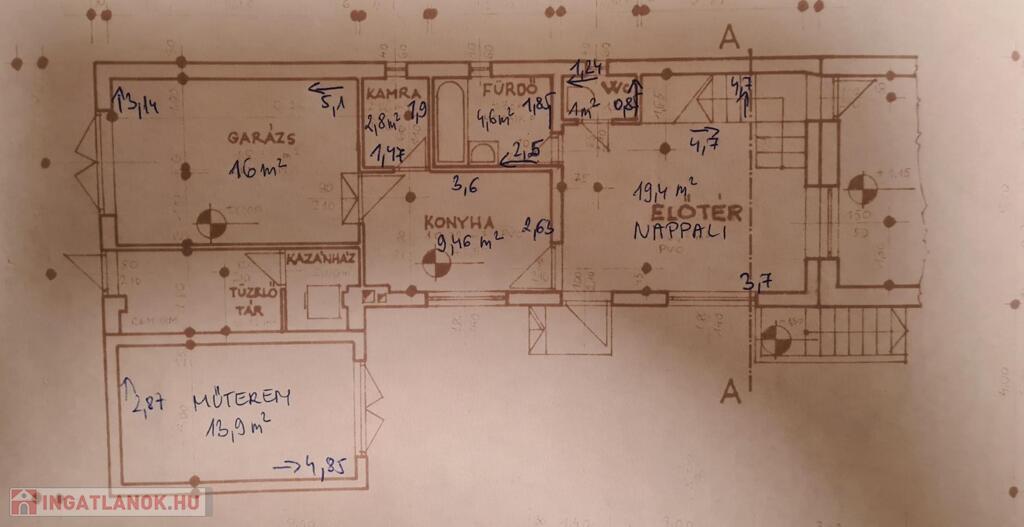 Az ingatlan két szintes, a földszintről nyílik a tágas nappali, a konyha, kamra, fürdőszoba és a külön wc.