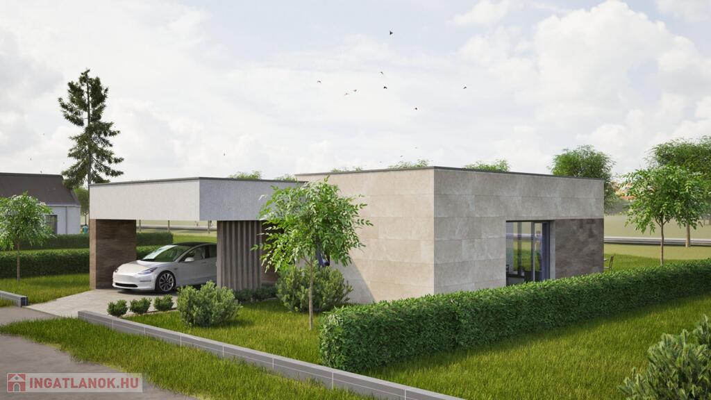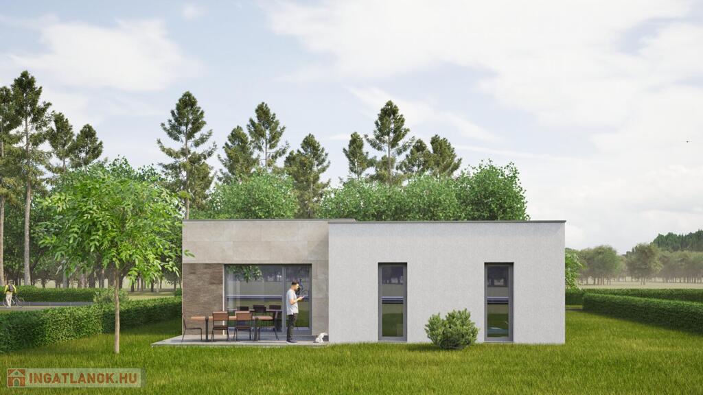 A mai modern igényeket jól kiszolgáló, lakóterében egyszintes, kényelmesen élhető, három szoba + amerikai konyhás nappalis ,két fürdőszobás, garázzsal megépített ÖNÁLLÓ CSALÁDI HÁZ fogalmazódott meg a tervezés során. Melyet alaposabban áttanulmányozhat a tervrajzok és a látványtervek segítségével.