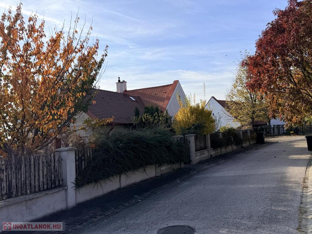 1292 m², körbekerített, parkosított telek fenyőkkel, dísznövényekkel, fákkal, burkolt garázslejáróval.