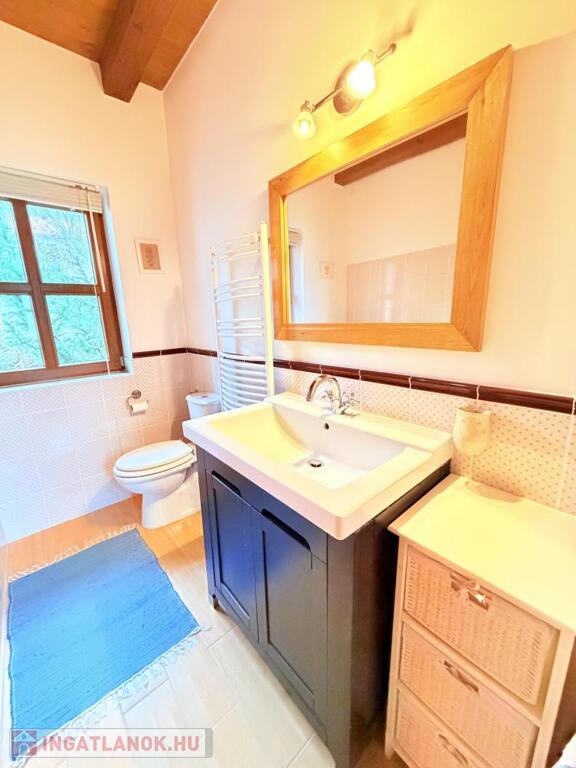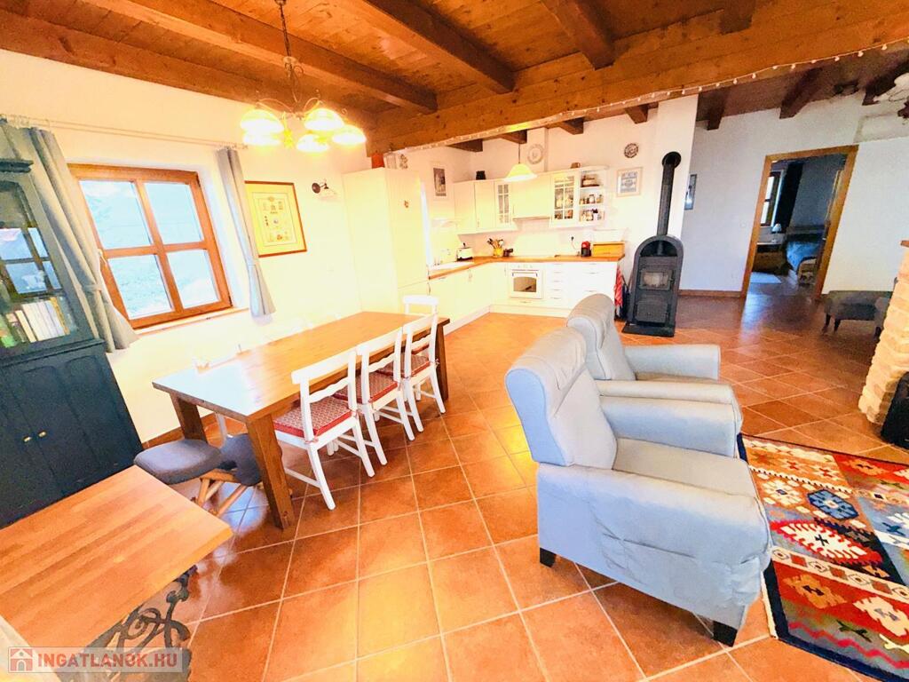 Fűtés: Junkers kondenzációs kazán új melegvíz-tárolóval, padlófűtés a lakótérben, radiátorok a hálókban, (telefonról vezérelhető)öntöttvas kandalló,