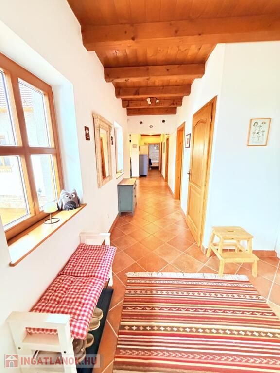 A ház belső tere egységesen tovább viszi a külső tradicionális karaktert, minden helyiségben látszó fafödémmel, természetes, meleg hatású fa felületekkel,így a modern kényelem és a hagyományos forma itt valódi értéket képvisel