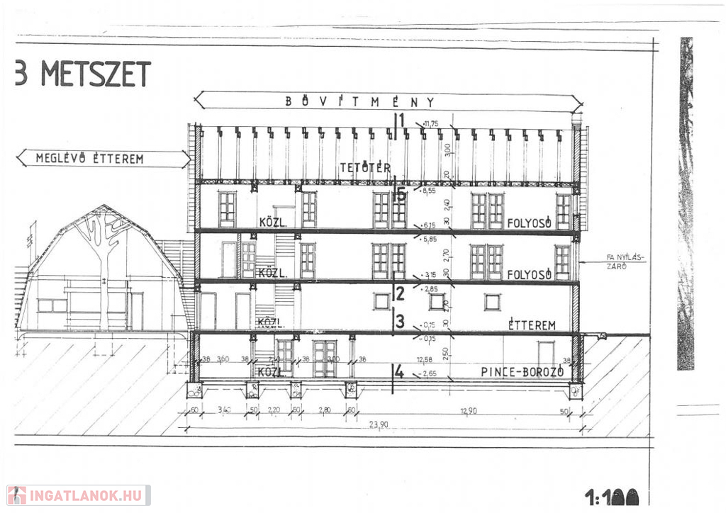 - mellette az 1993-ban téglából épült főépületből, 4 szinten (784 m²)
