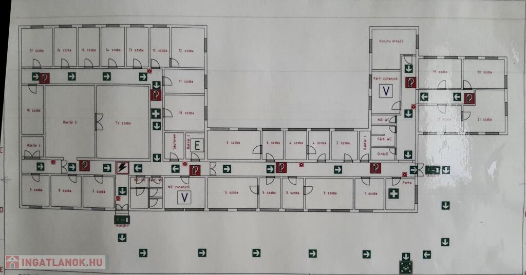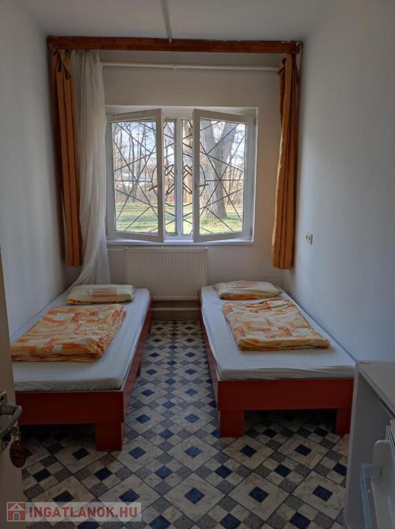 24 szoba: 2-3-4 ágyas szobák hűtőszekrénnyel és ruhás szekrényekkel, ebédlő asztalokkal, székekkel minden szobában.