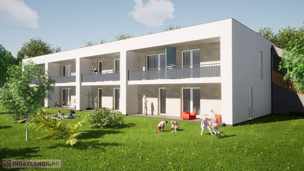 A B épületben a lakóegységek többsége nappali + 1 hálószobával rendelkezik, kb. 52 m2 alapterülettel. A földszinten terasszal, kertkapcsolattal, az emeleten loggiával. Ebben az épületben összesen 9 db lakás + tároló helyiség lesz.
