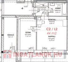 Az itt meghírdetett lakás a C2 épület, földszinti, kertkapcsolatos saroklakása, alapterülete 43 nm+ 25 nm terasz,kb. 40 nm kert, amerikai konyhás nappali, szoba,fürdőszoba,előtér.