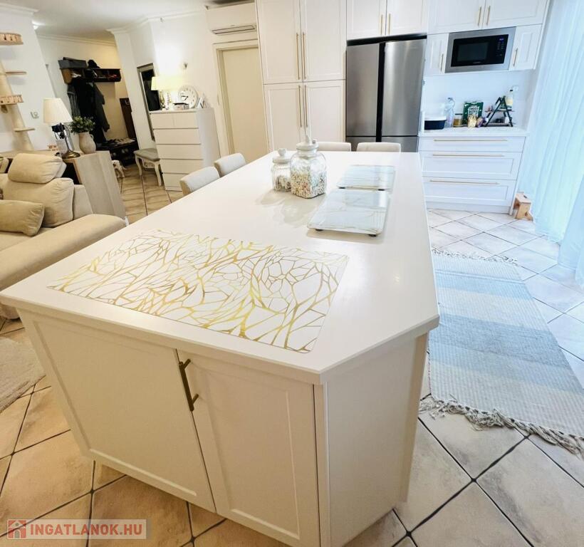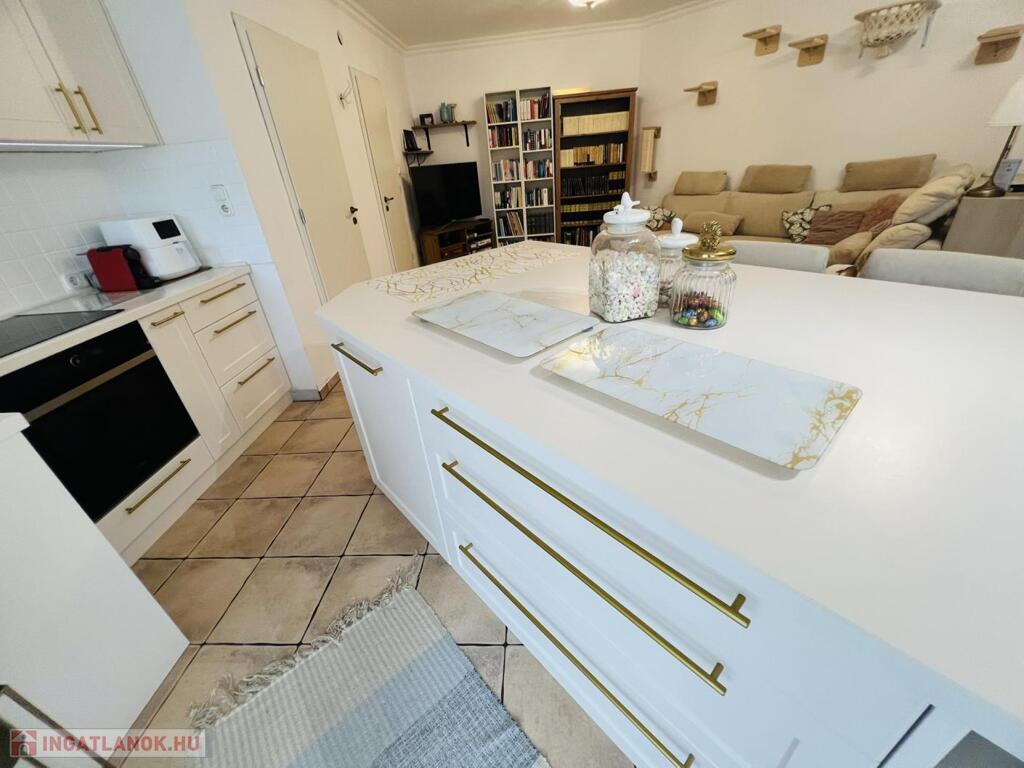 A lakásban igényes, jó minőségű burkolatok, szaniterek, egyedi VADONAT ÚJ beépített konyhabútor található. Az összes nyílászáró redőnnyel és szúnyoghálóval ellátott. A ház előtt mindig van megfelelő szabad parkoló, akár saját akár vendégei számára is.