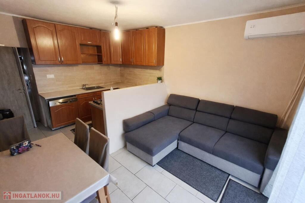 2025-ben a teljeskörű felújítás során a teljes víz- és villanyvezetékek cseréje megtörtént, a burkolatokat is kicserélték, így kellemes és igényes hangulatú a lakás. Az átalakításnak köszönhetően az amerikai-konyhás nappalin kívül még 2 hálószoba került kialakításra, a fürdőszobát is teljesen felújították: dupla mosdókagyló és kényelmes sarokkád került beépítésre. Az illemhely a fürdőtől külön helyiségben található, amelyben a kibővítésnek köszönhetően a mosókonyhaként is funkcionál. A lakásban egy tágas kamra is helyet kapott. Az elektromos hálózatot kibővítették, éjszakai áram is van és a H tarifa kiépítése is megkezdődött. A nappaliba hűtő-fűtő klíma került beépítésre, a lakásban ezen kívül még elektromos panelek gondoskodnak a fűtésről. A melegvizet új villanybojler biztosítja. Az ablakok 3 rétegű műanyag nyílászárok, redőnnyel és szúnyoghálóval felszereltek. A nappaliba tolóajtós teraszajtó és elektromos redőny került beépítésre. A lakás 10 cm vastag külső szigetelést kapott.