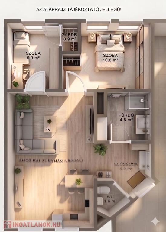• A tágas amerikai konyhás nappali mellett teljesen új melegburkolatok, modernizált fürdőszoba és külön helyiségben található mellékhelyiség várja az új lakót. Ide tényleg csak a bőröndödet és a kedvenc bútoraidat kell hoznod.
