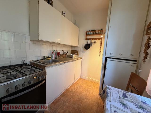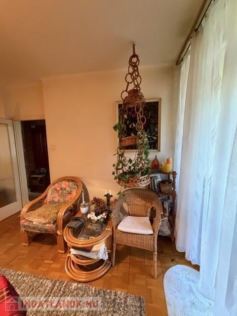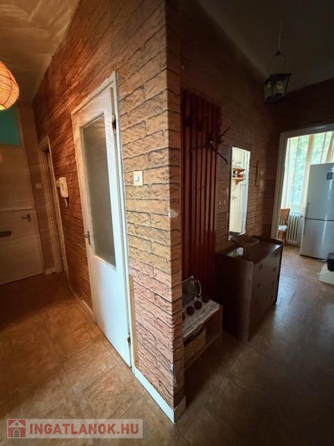A négy szintes téglaépület 2. emeletén található az ingatlan, két tágas hálószobával, nappalival, konyhával, fürdőszoba és WC áll rendelkezésre. A nappaliból és a hálószobából is egy-egy hangulatos erkély nyújt lehetőséget a pihenésre, a konyha pedig a hátsó parkosított részre nyújt kilátást. A konyha viszonylag tágas, napfényes, praktikus kialakítású, étkezővel, beépített konyhabútorral. A nyílászárók még cserélve nem lettek, régi típusú fából készült, de jó állapotú. A lakásban a folyosón, konyhában, fürdőben hagyományos hidegburkolatok, a szobákban régi típusú szalagparketta funkcionál burkolatként. A lakás melegen tartása társasházi központi fűtésről történik a helyiségekben radiátorokkal. A lakáshoz tartozik egy saját tároló a földszinten. A lépcsőház rendezett, jó lakóközösséggel.