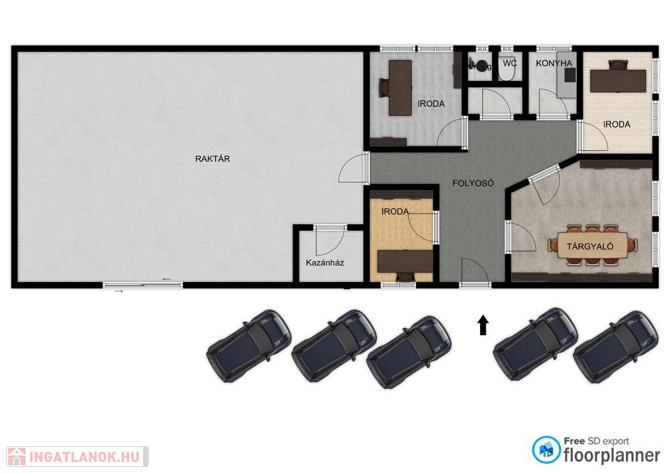 - Raktár alapterület: 240 m²