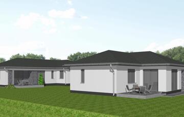• Épület típusa: egyszintes, 3 hálószoba + amerikai konyhás nappali, terasszal