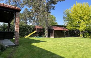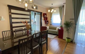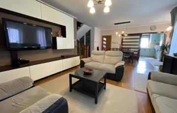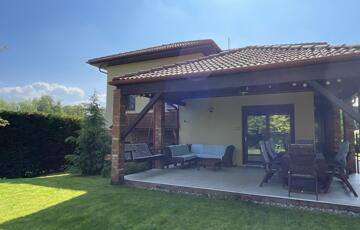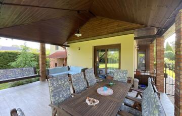 Kivételes családi otthon Tatán– 186 m²-es luxusingatlan 867 m²-es telken, az Öreg-tó szomszédságában -Lokáció: A Fácánoskert Tata egyik legnívósabb, csendes családi házas övezete, ahonnan mindössze 100 méterre található az Öreg-tó partja. Ez az ingatlan tökéletes választás mindazok számára, akik exkluzív környezetre, nyugalomra és magas életszínvonalra vágynak, kompromisszumok nélkül. -Telek és külső jellemzők: Az 867 m²-es, gondozott telek kertépítész által tervezett, öntözőrendszerrel felszerelt díszkertje garantálja a természet közelségét. A hangulatos, intim kertben díszcserjék, fenyők és egy gyönyörű, árnyékot adó díszfa kapott helyet. A hátsó részen egy tágas, fedett terasz biztosítja a családi és baráti összejövetelek tökéletes helyszínét. A telket elegáns kovácsoltvas kapu és térkövezett bejáró határolja. A biztonságról és praktikusságról Hörmann dupla garázskapu, fúrt kút, valamint modern öntözőrendszer gondoskodik. -A ház felépítése és belső elrendezése (186 m², 3 szint): Földszint: A belépőt tágas, nappali fogadja, amely harmonikusan kapcsolódik az étkezőhöz és a stílusos, modern konyhához. Az egyedi, halványzöld konyhabútor prémium beépített gépekkel (Bosch sütő, főzőlap stb.) felszerelt. A földszinten továbbá helyet kapott egy külön WC és egy praktikus kamra is. A tér elrendezése kifejezetten élhető, a helyiségek természetes módon kapcsolódnak egymáshoz. Emelet: A felső szinten négy kényelmes méretű szoba és két fürdőszoba található, így ideális nagyobb család vagy több generáció számára is. A szobák jól szeparálhatóak, a természetes fény minden helyiséget átjár, a burkolatok és ajtók minőségi, időtálló anyagokból készültek. Pinceszint: A ház alsó szintjén található a dupla beállásos garázs, egy tágas tárolóhelyiség, valamint egy mosókonyha és gépészeti tér. Itt kapott helyet a ház technikai központja, beleértve a vízlágyító rendszert, a fűtés vezérlését és az egyéb berendezéseket. -Műszaki tartalom és extrák: -Padló és falfűtés -Három rétegű fa hatású műanyag nyílászárók - Tölgyfa beltéri ajtók -Klímaberendezés a komfortos nyári hőmérsékletért -Víztisztító és vízlágyító rendszer -Igényes kerámia és fa burkolatok -Modern világítástechnika -Beépített szekrények és tárolók -Hörmann garázskapuk – két autó számára kényelmes beállás -Riasztórendszer és napelemrendszer vezetékezése előkészítve – így a későbbi bővítés, okosotthon funkciók vagy zöld energiahasználat is könnyedén megvalósítható Ez az otthon nem csupán egy ház – ez egy életstílus. Ha egy minden részletében átgondolt, gondosan karbantartott, kiváló lokációjú prémium családi házat keres, ez az ingatlan ritka lehetőséget kínál a tatai piacon. További információért vagy személyes megtekintésért kérem, keressen bizalommal! Érd: Haluza-Komáromi Gabriella: 30/9977794