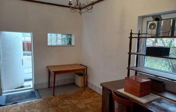 És igen, a kertből teljesen különállóan,de mégis oldával határos a műterem is, de hívhatjuk művész szobának, vagy hobbyszobának is!