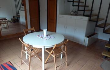 A nappaliból kényelmes lépcsőn át az emeletre felérve szintén egy tágas nappali, ebből nyíló két hálószoba és egy fürdőszoba tárul elénk. Közvetlenül a nappaliból juthatunk a fedett 17 m2-es teraszra, mely a művésszoba tetején található!