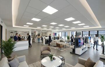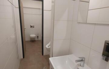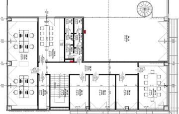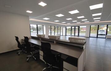 • Földszint (Bemutatóterem + kiszolgálás): A 100 m²-es bemutatóterem az utcafrontra néz – ingyen reklámfelület a homlokzaton! Mellette raktárak, szerverszoba, szociális blokk.