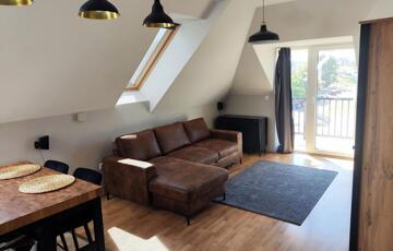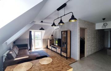 A lakás a harmadik emeleten található, három ízlésesen berendezett hálószoba, egy tágas amerikai konyhás-nappali és két nagyméretű fürdőszoba áll rendelkezésére a leendő tulajdonosnak a mindennapok eltöltéséhez. Az egyik fürdőszobában beépített kád, a másikban zuhanyzó, minőségi burkolatok és szaniterek találhatók. A szobákban laminált parketta, a konyhában és a fürdőben hidegburkolatok funkcionálnak padlóként. A két erkélyről páratlan panoráma nyílik a Gerecsére, ahol kipihenheti a hétköznapok fáradalmait. A magasfényű IKEA-s konyhabútor praktikus kialakításával, beépített gépekkel, indukciós sütővel és páraelszívóval élménnyé fogják tenni a konyhában töltött időt. A nyílászárókon redőny található, Velux árnyékolóval és szúnyoghálóval felszereltek. A tetőtér 20 cm-es gyapot, tükörfóliás szigetelést kapott, valamit egy hűtő-fűtő klíma is beszerelésre került, ami még kellemessebbé teszi a hőérzetet a téli és a nyári időszakban egyaránt.