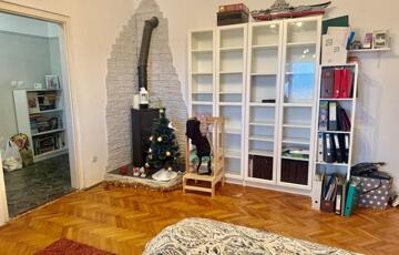 - fa tüzelésű kályha a nappaliban